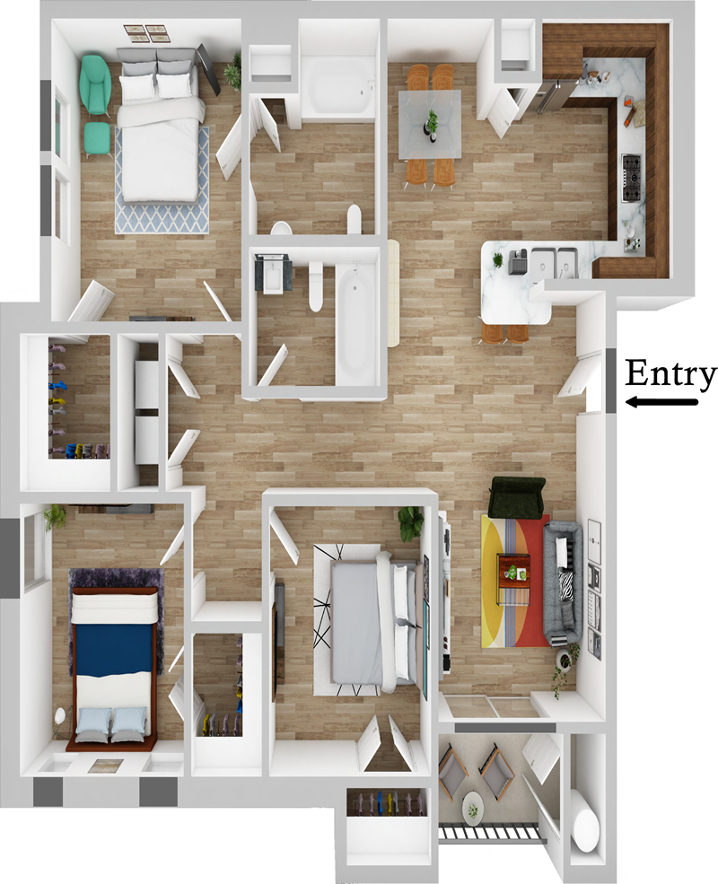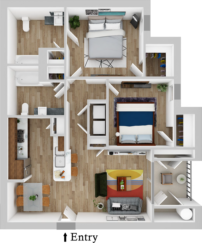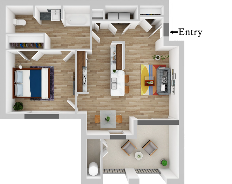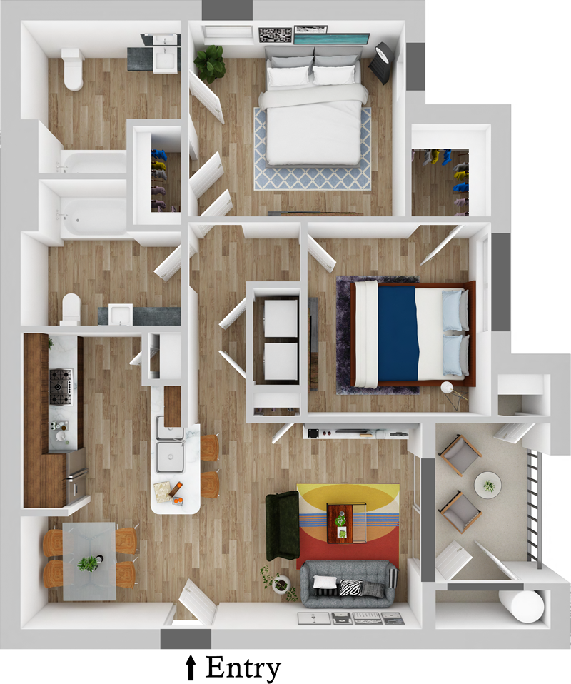 Our floor plans are expertly tailored to maximize the use of floor space and counter space, streamlining the function, flow, and overall feel of each home. Modern colors and sleek design offer a stylish aesthetic that can be personalized to suit your decorative tastes.